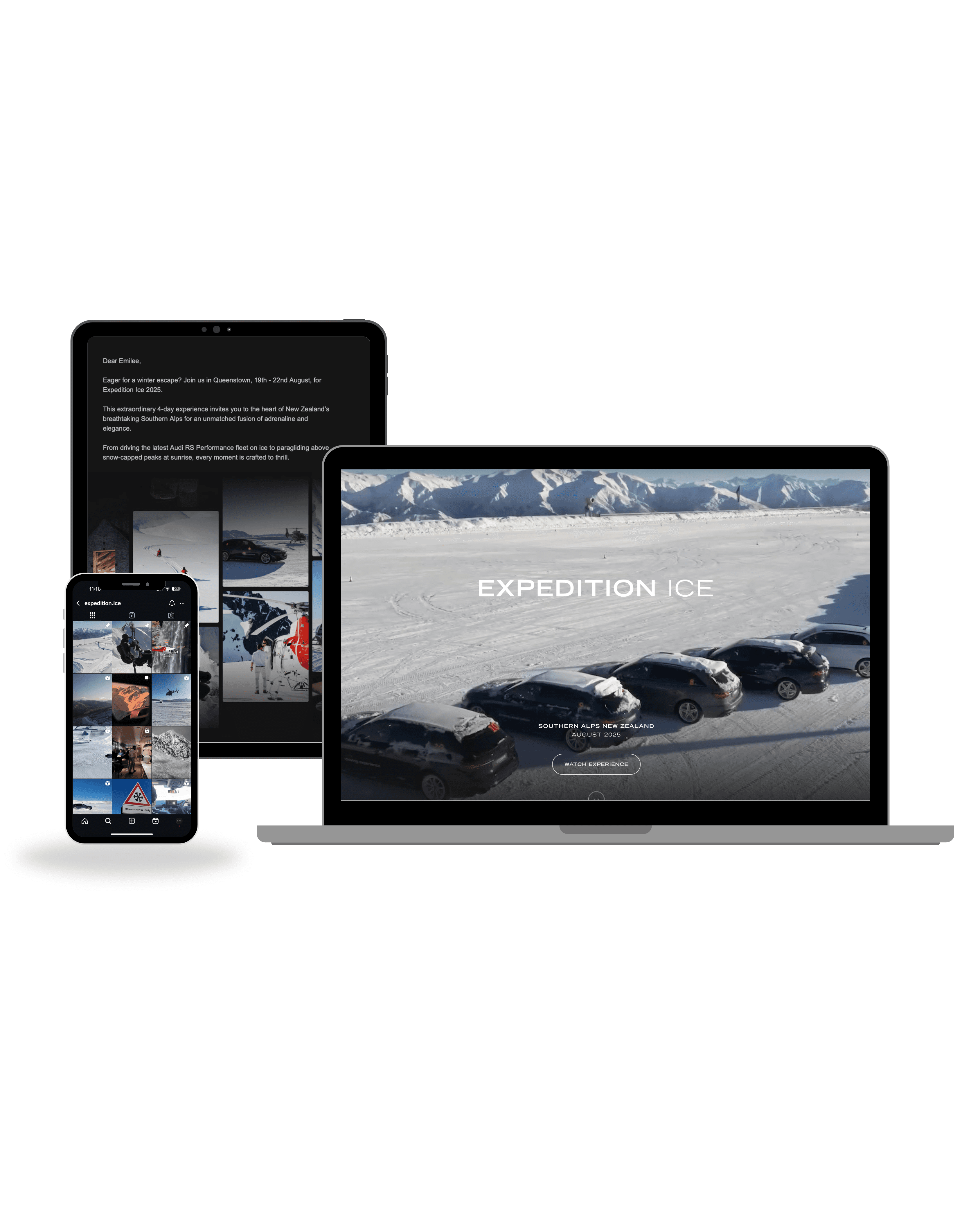 We built Expedition Ice from the ground up, creating a brand identity that captured the essence of premium adventure, refined thrill, and alpine grandeur. Brand Strategy and Identity Leading brand strategy and working with carefully selected creative partners, we developed a visual and verbal language that reflected the calibre of the experience. Every element was anchored in luxury, performance, and the awe of New Zealand's most iconic landscapes. Social Media Presence We extended the brand across digital touchpoints, establishing a social media presence that introduced the experience to the world, built intrigue, and positioned Expedition Ice as a must-attend moment for high-performing individuals. Email Marketing An email strategy was developed to nurture early interest from the ground up, including waitlist campaigns, launch announcements, and curated content sequences designed to educate, inspire, and convert.